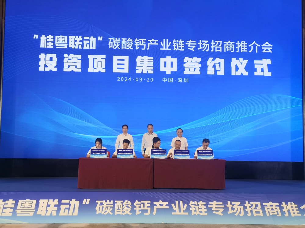 9月20日,广西绿树新材料有限公司受邀参加广西壮族自治区统战部组织的“桂粤联动”碳酸钙产业链专场招商推介会,并在自治区党委常委、统战部部长王心富及贺州市委常委、统战部部长、副市长蒋晓军等领导的见证下,与贺州市高新区管委签订投资规模约11亿元的高分子新材料产业基地项目。